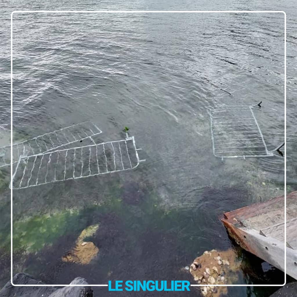 Les déchets ont pu être ramassés mais la poubelle baigne toujours dans l’eau. Les auteurs de ce vandalisme sont recherchés en espérant que les cameras de la ville donnent un début de réponse.