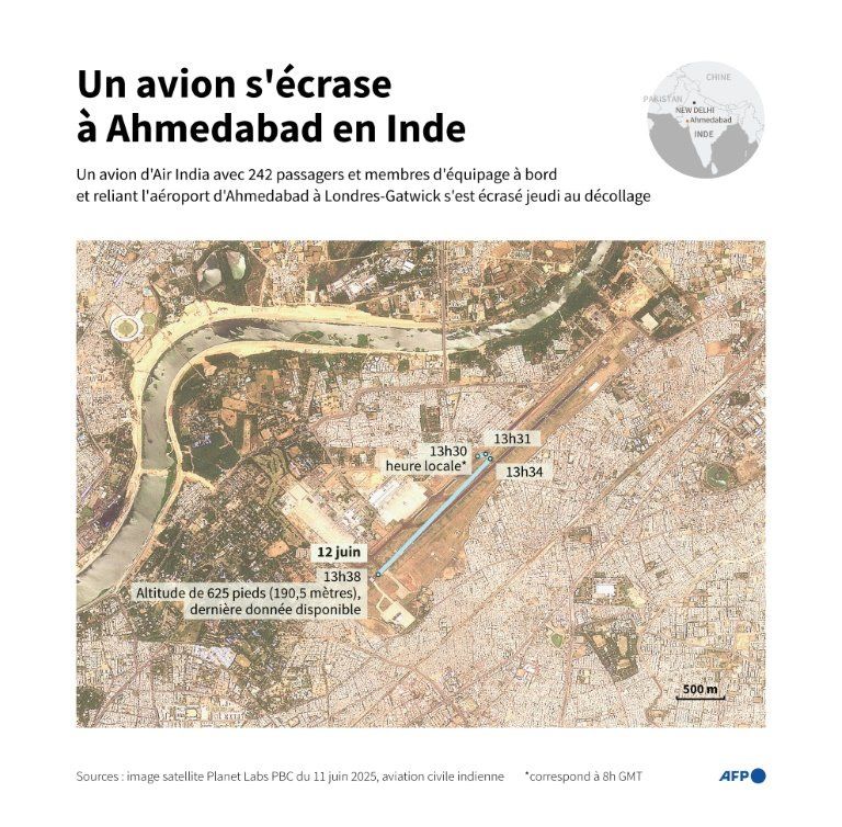 Parmi les 242 passagers et membres d’équipage, un seul homme a miraculeusement survécu. Identifié comme un Britannique d’origine indienne, il a été filmé sortant des décombres avant d’être pris en charge par les secours. Les images montrant l’épave enfouie dans les ruines d’un bâtiment abritant des étudiants en médecine témoignent de la violence de l’impact.