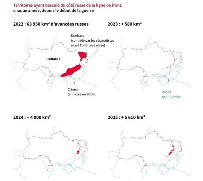 Les forces russes ont progressé sur plus de 5600 kilomètres carrés en 2025, selon des analyses cartographiques. Cette pression militaire survient à la veille de nouvelles...