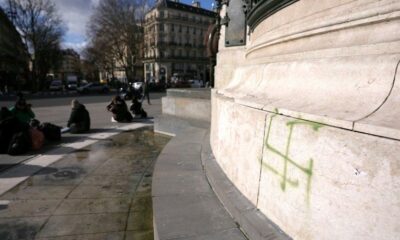 _**L’emblème républicain, place de la République, a été vandalisé par des symboles nazis et des appels à la haine, dans un contexte de persistance des actes...