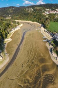 « Jusqu’à quand va-t-il encore sécher ce pauvre Doubs ? »: à Villers-le-Lac (Doubs), la sécheresse frappe depuis trois étés. La majestueuse cascade du Saut du Doubs est à sec, les méandres de la rivières se sont taris et le lac s’est évaporé.